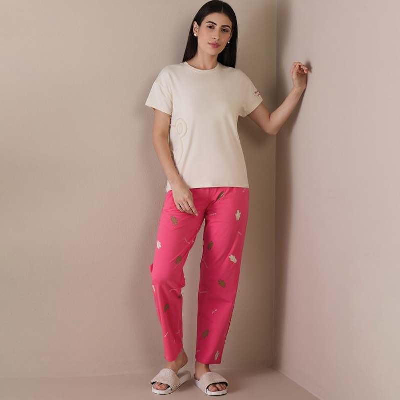 Bottom Closure : Drawstring Bottom Fabric : Cotton Blend Bottom Pattern : Printed Bottom Type : Pyjamas Knit or Woven : Knitted Neck : Round Neck Number of Items : 2 Package Contains : pyjama set